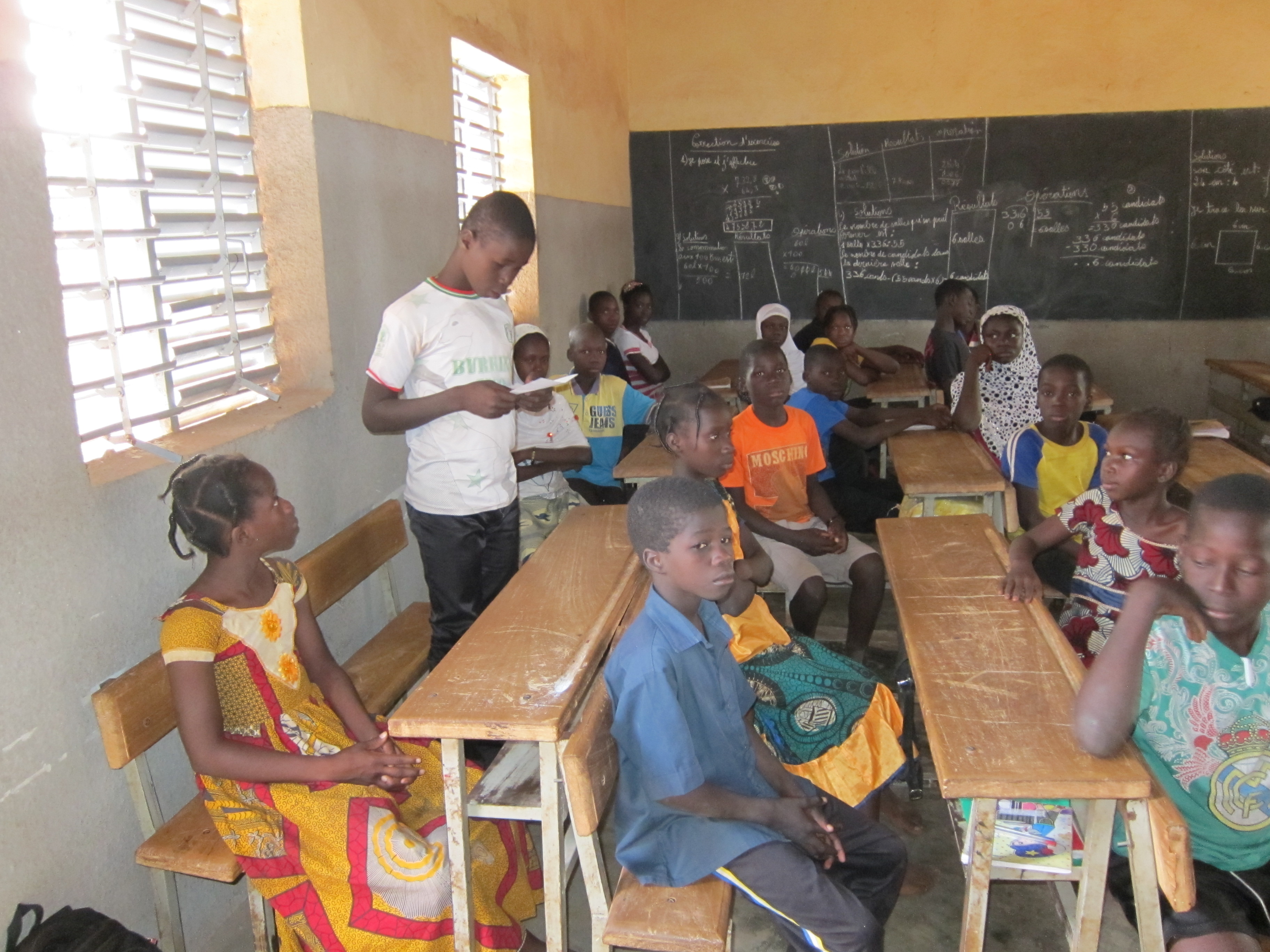 Directeur van de school monsieur Sanou, heeft ons rondgeleid en in elke klas hebben we met de leerkracht en kinderen gesproken, Heen en weer werden vragen gesteld. Wij, van onze kant waren benieuwd wat de kinderen willen worden "als ze groot zijn". Vaak kwam de dokter, politieman, advocaat en leraar voorbij en één meisje wilde President worden.
